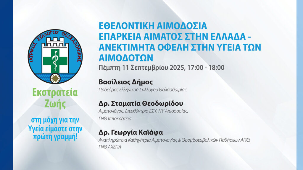 Εθελοντική αιμοδοσία- επάρκεια αίματος στην Ελλάδα 11/9/25